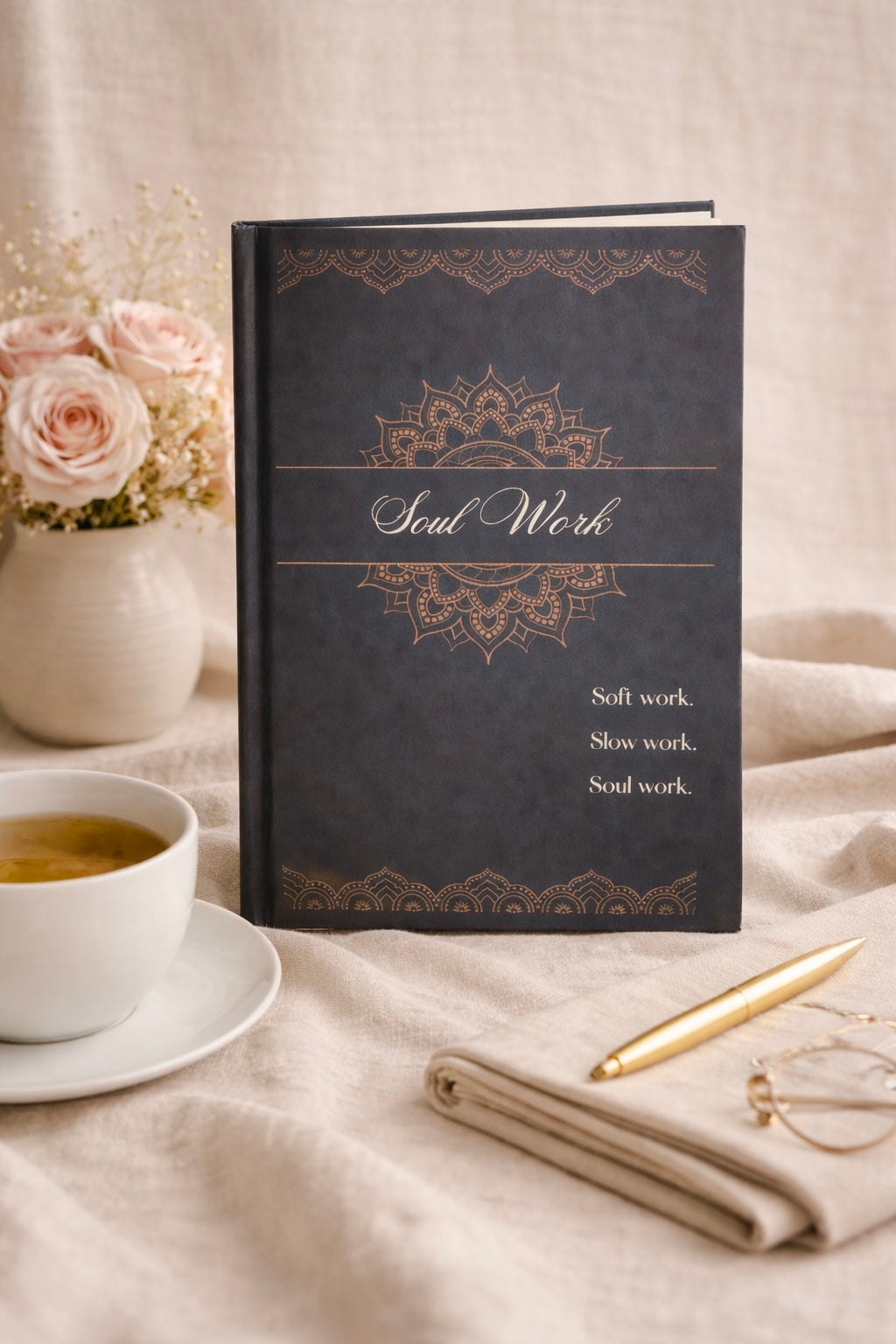 Created as a sacred space for women to slow down and reconnect with themselves, this beautifully designed hardcover journal helps you explore the deeper layers of life. Whether you are navigating a season of change, seeking emotional clarity, or simply wanting to establish a daily ritual of mindfulness, Soul Work becomes a gentle companion on your journey inward.